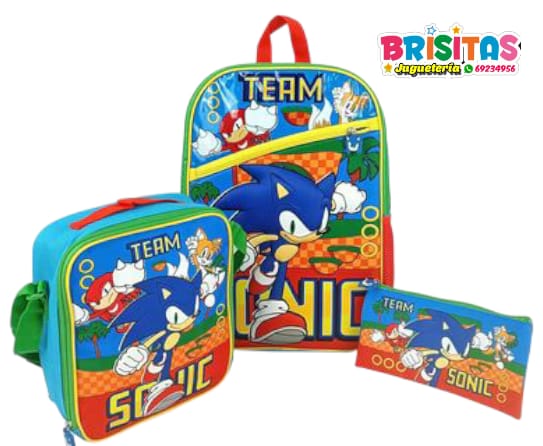 Mochila Sonic tamaño Oficio 3 piezas (Marca Scool Original) cantidad